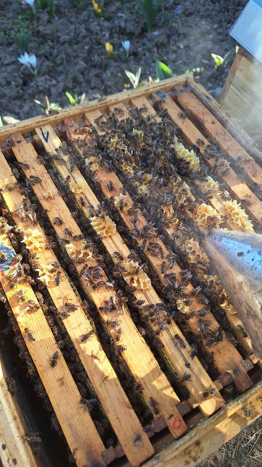 Unsere Wobau OH Bienen genießen den ersten guten Nektar der Natur und versorgen ihre Brut mit leckerem neuen Pollen. Fleißig sind sie schon, daher dürfen ein neu zugesetzter Drohnenrahmen und die Flug...